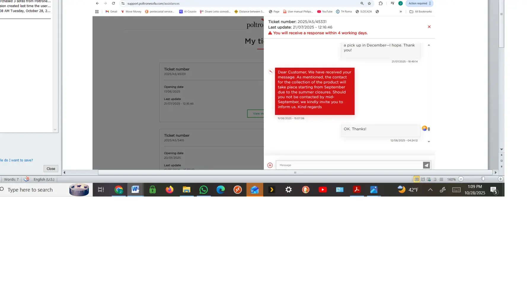 I purchased 3 sofas from Poltrone Sofa in October 2024, which were delivered on 11 Dec. 2024. Within ten days I noticed wrinkles in the leather in one of the sofas--I reported it to the store. They admitted my contact with the store and sent a Tech to look at in February. Tech immediately said that the wrong side of the cow had been used. Poltrone Sofa told...