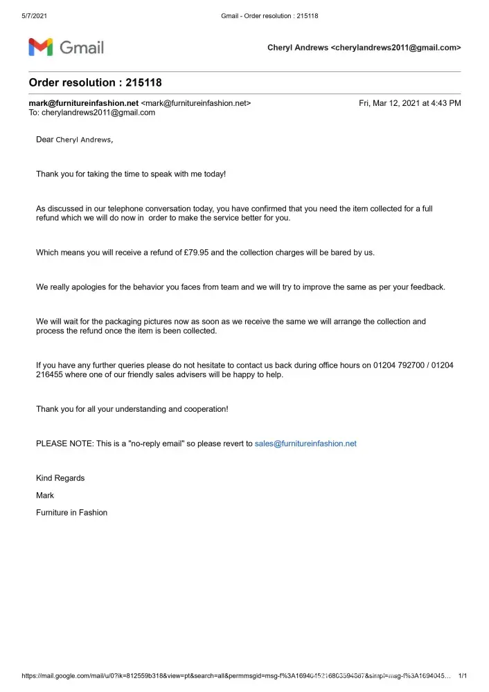 Read full complaint and 36 commentsFurnitureInFashion complaints: history and resolution overview
