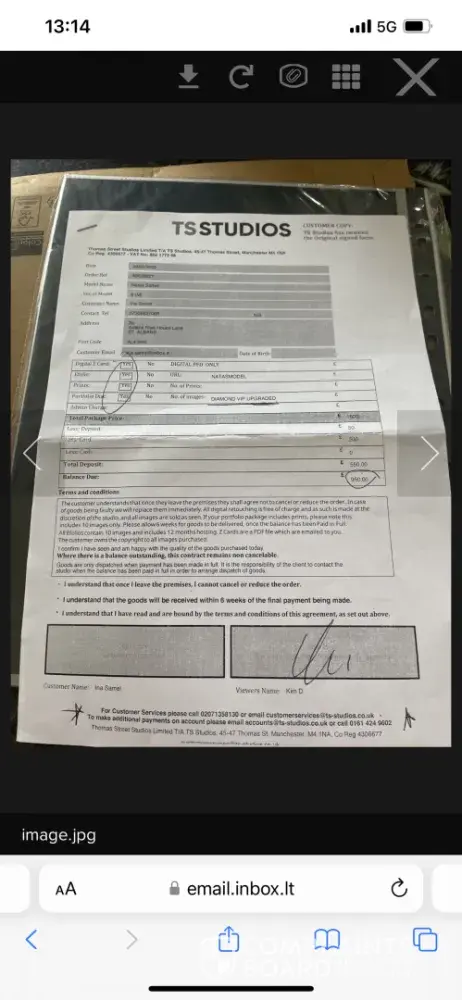 Although i dont think they was getting it we hadent brought any money with us so we agreed to sign all paperwork and phone later that day with the £75 if we still wanted the pictures the lady said that was fine but only on the condition that she would post our photos once we had called back with the deposit which was understandable and we left.