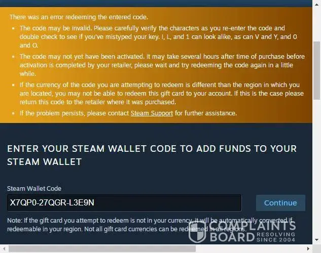 A $100 steam wallet gift card which I purchased says not activated when trying to redeem. Please I need a help as soon as possible.