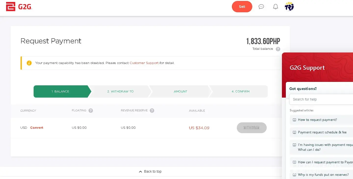 Iam seller in g2g and g2g disabled my payment for no reason they scam me for more than 700 usd and iam tired to email support for help