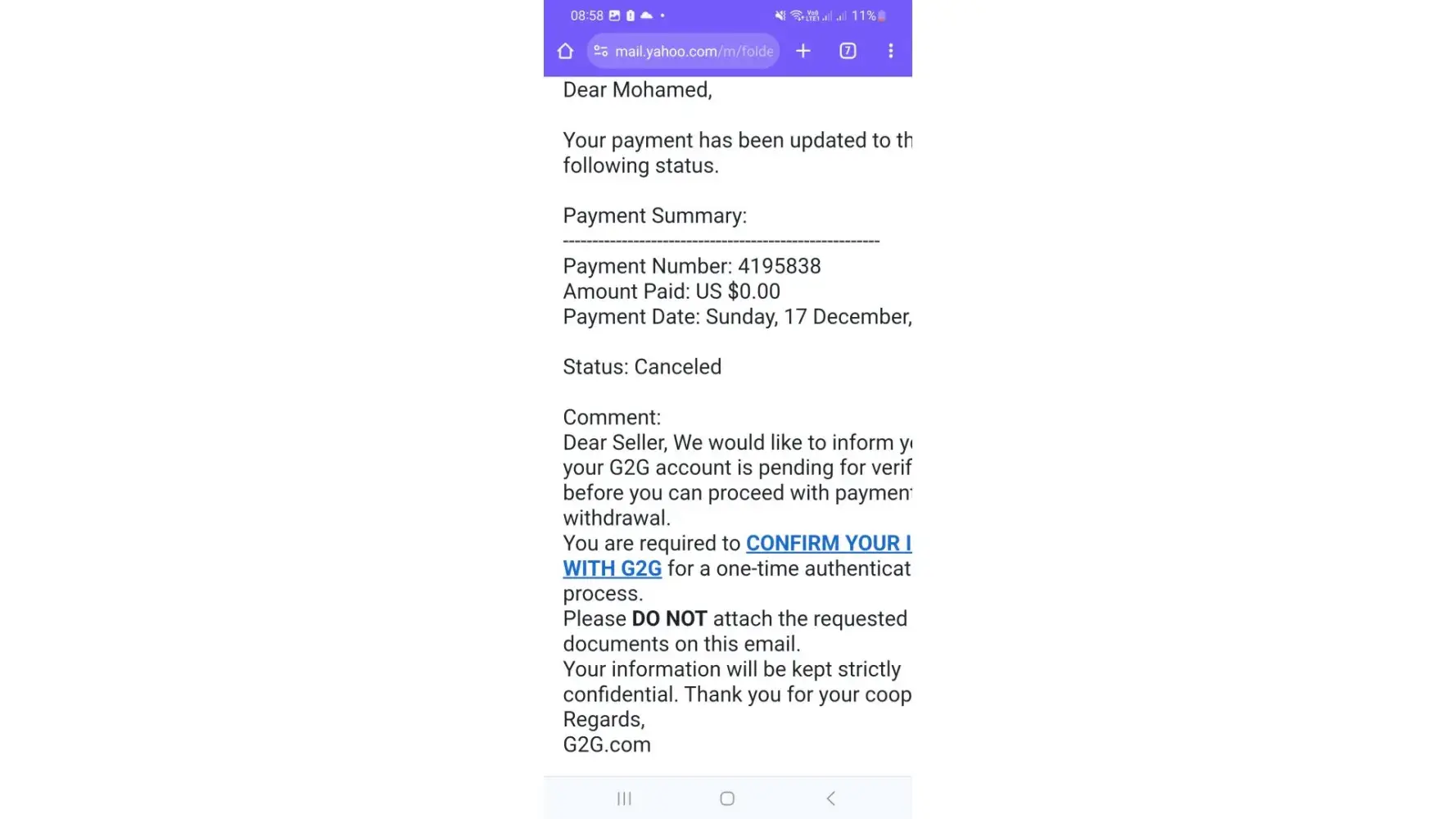 In g2g befor support said my name not correct but my name is correct as my id don't buy or sell in g2g