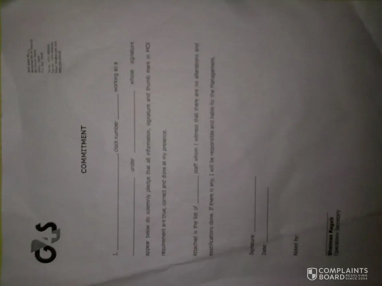 G4S signature in blank paper