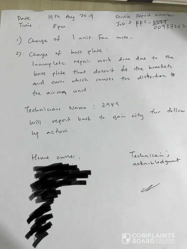 The technician came down at about 10.30am yesterday. After checking the unit, he brushed off and said that he is not able to service it as he has not seen or done this model before. I realized that it was the same person who came on July 9, 2023 (PKS-[protected], Team ID: M-9625) and did a sketchy job after making the same comment.
