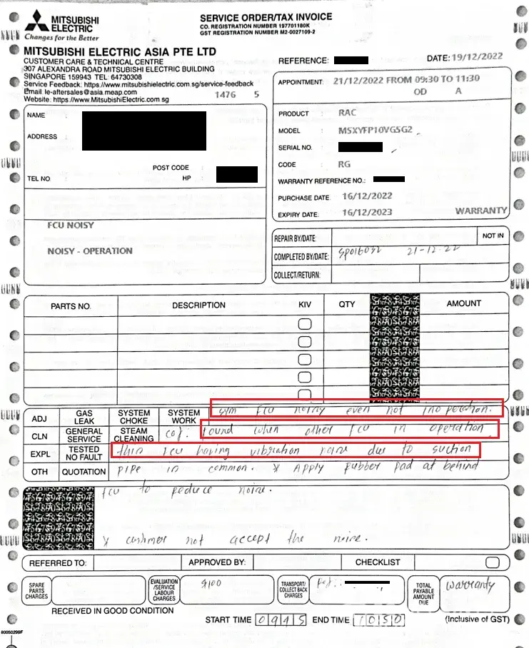 Several months after the installation, my family feedbacked that the kitchen area did not feel cool despite the air-conditioner in the living room turned on. As a result, we called the customer service hotline who gladly arranged a technician to arrive on-site to investigate.