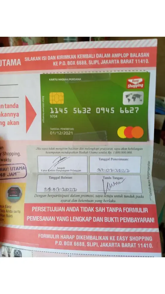 Dan saya tidak diberikan oleh easy shopping seperti yang saya buat laporannya. Alamat rumah sementara: jl. Pinang 4 gg. Edukasi no 54 rt.010 rw.09 cilandak pondok labu jakarta selatan 12450