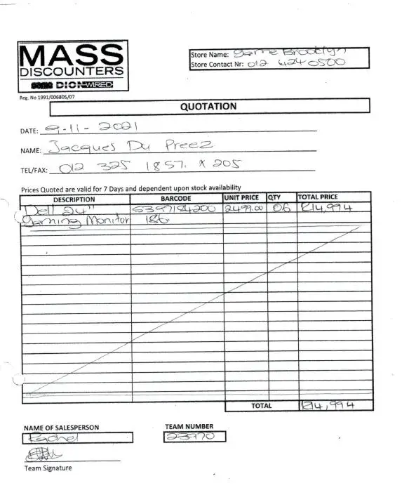 We ordered 6x Dell 24" gaming monitors from Brooklyn Game and requested that they perform an inter branch transfer and pull all stock to their store.