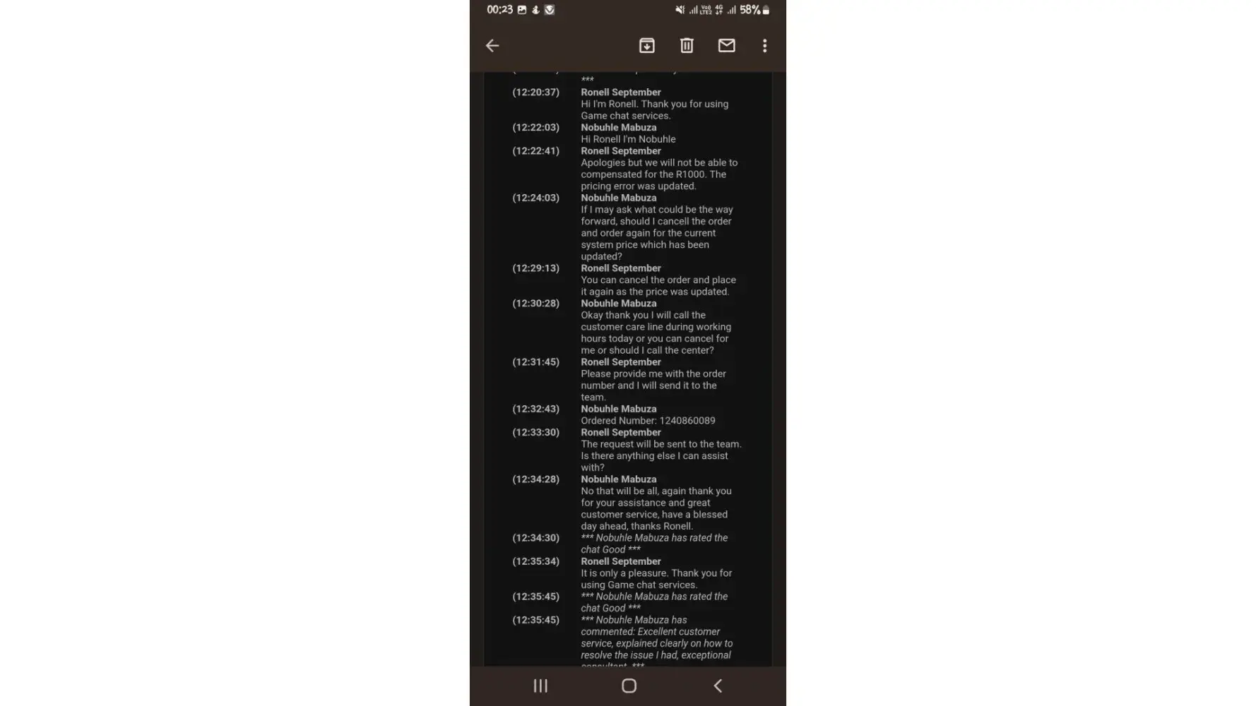 This experience has been so poorly handled and with such incompetence that I'm seriously considering cancelling my order with Game and reordering the Xbox from Takealot, it will probably arrive here sooner than the Game order too.