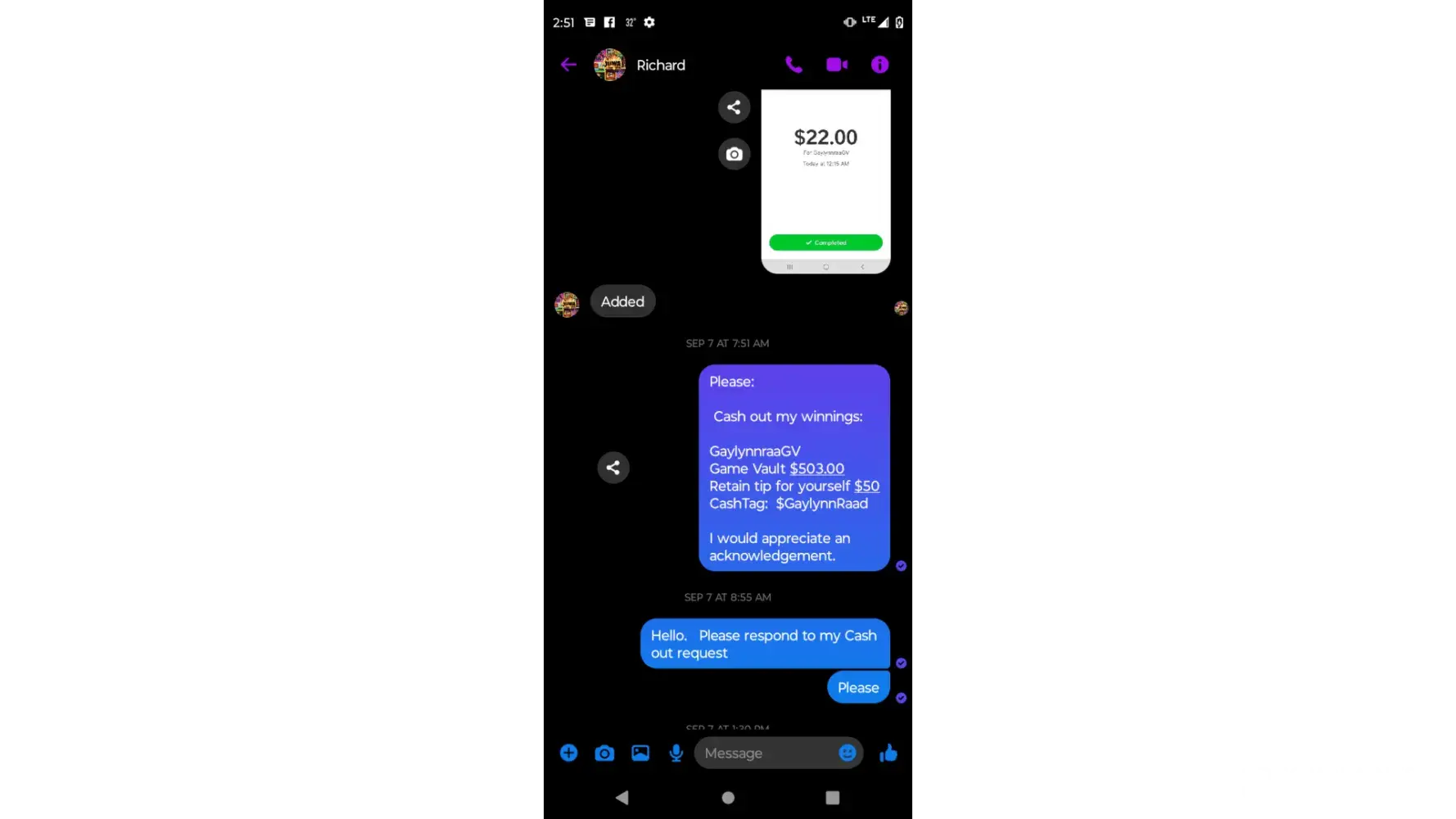 I paid Adam numerous time on cash app to play game vault well wen I finally won $68 after hundreds of dollars of not winning. He says there's a 72 hr rule u have cash out with in. Well I said ok and looked at times screen shotted it sent it to him and said I still have 2hrs left he then says rules are rules well if rules are rules why'd I get cheated. This is horse crap I have all proud and multiple witnesses to this..