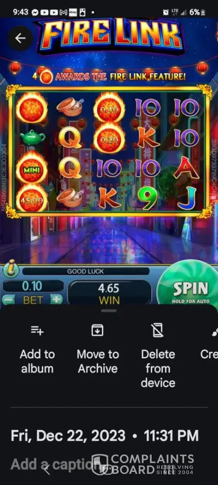 Today dec. 1 2023 I got fireballs 2 miners 1 mini 4cent and did not give me fireballs spins I text the provider and all they say it's ok no it's not ok I live on fixed income then I continue playing hit again 45. $ mini 3 /.20 cent and the same happened and they say it's ok I want my money I have screenshots of Ill take this to where someone will pay me