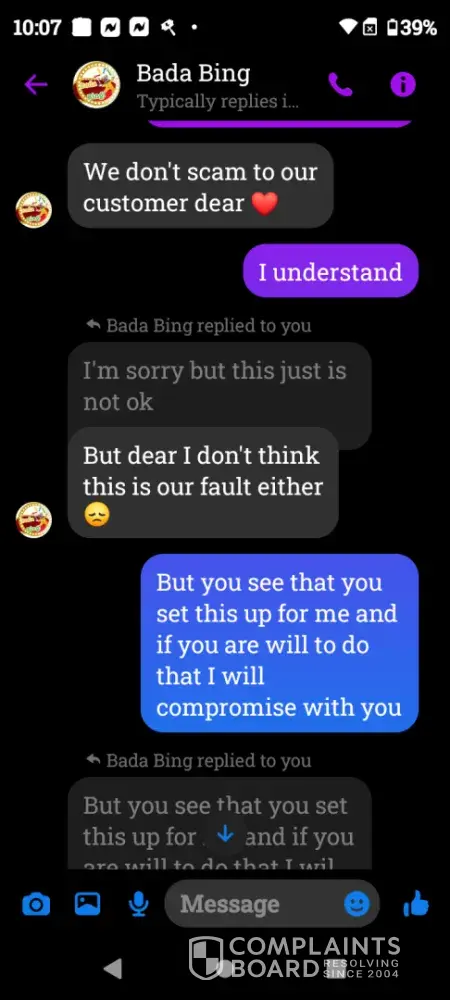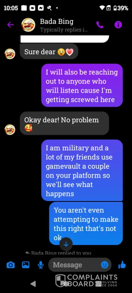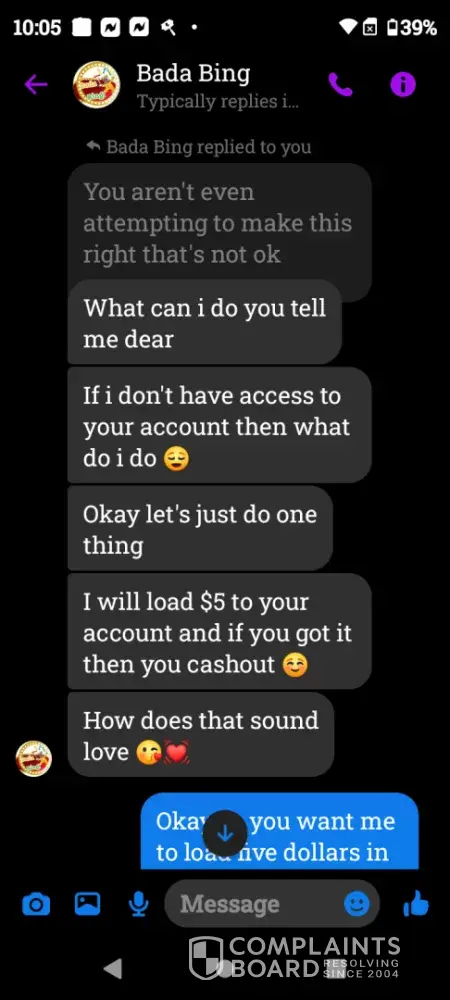 I have been messaging the people about it and they act like they don't know nothing about it and they said that they can't do nothing about that they're not allowed and the day this happened was December 22nd 2023 and I was 11:30 p.m. and they have not done anything except for give me the runaround.