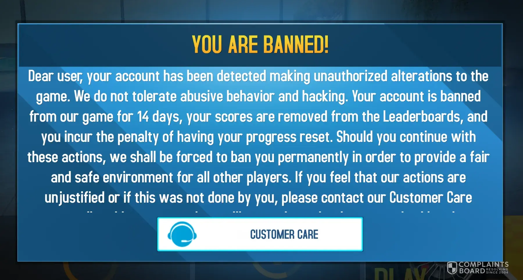 I just started playing the game about a week ago and was still very early in unlocking cars, career mode, ect. I did nothing to alter the game and believe I only had 2 cars unlocked, but my account was banned claiming I altered the game. I do not want to restart my progress and want my account back. This has been my favorite game to play since school started and it has been unrightfully taken from me, I will not wait 14 days and will not restart my progress.