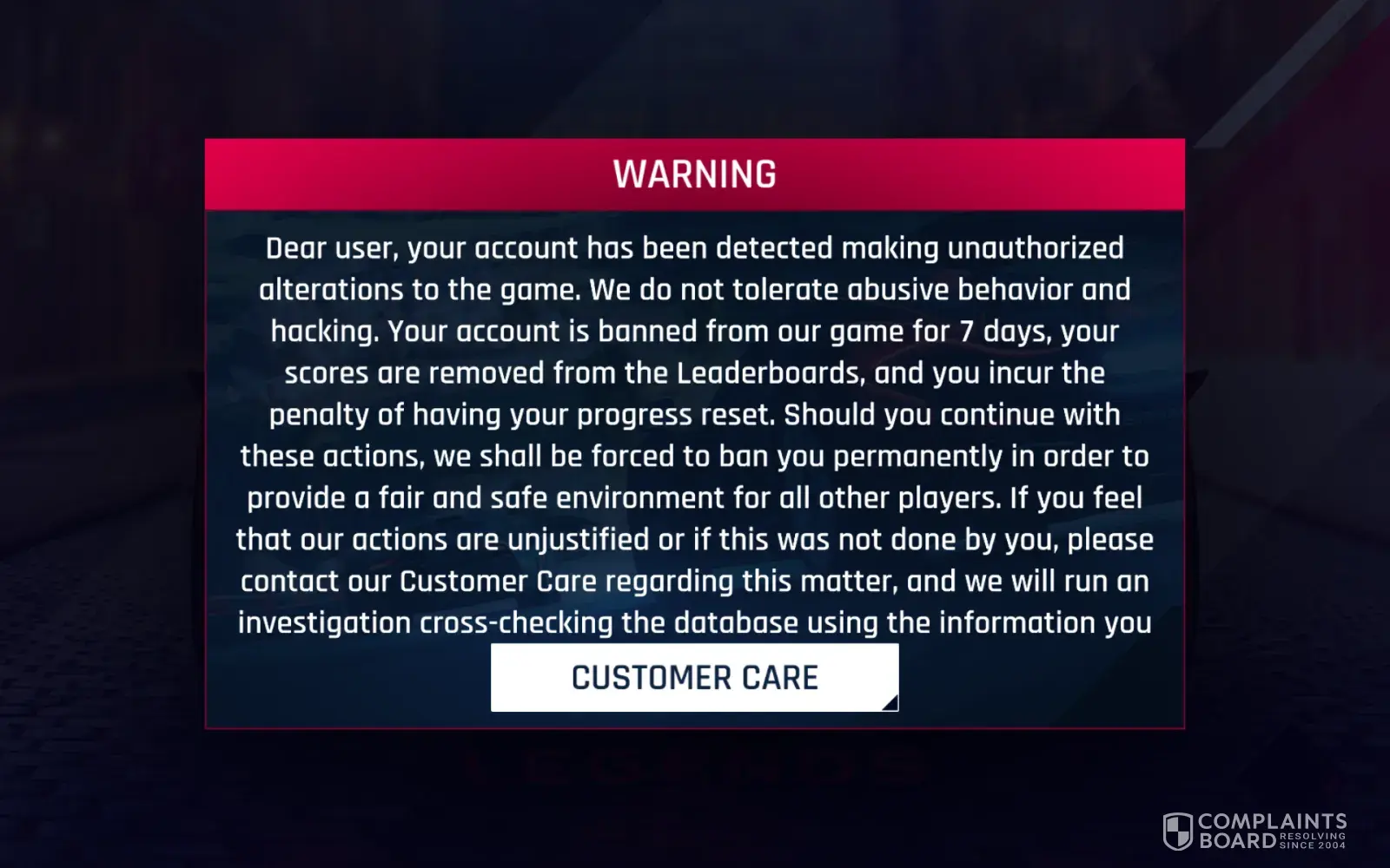 After u banned me for 7 days after that I play with legal apk