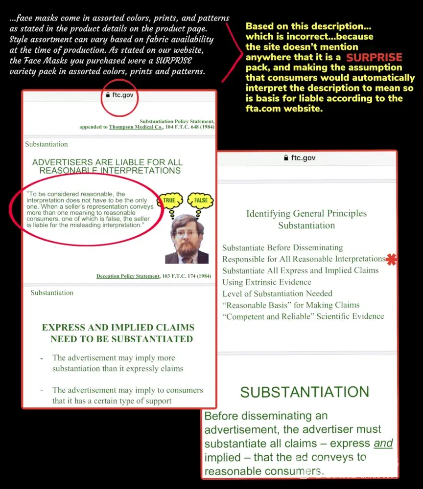 Based on the information above, my expectations were quite legitimate in expecting the pack of masks to all be different. I would not have purchased the products had I had known there would be 3 duplicates out of 5. This fact was quite material to me because the purpose of my purchase was to secure a different mask for my relatives thus avoiding any confusion. Receiving duplicates prevented the use of the masks.