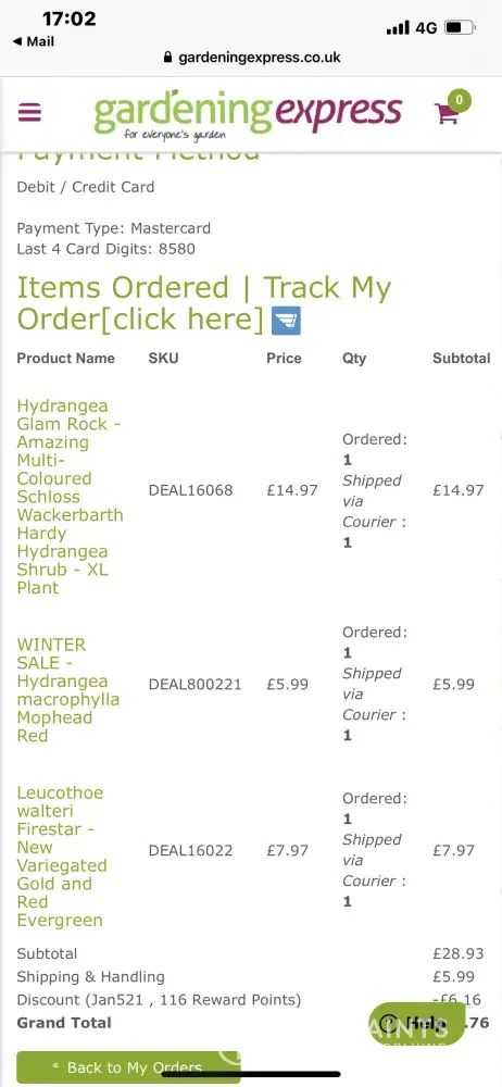 It is now Now on the 6th August I have not received the plant or any correspondence re delivery.