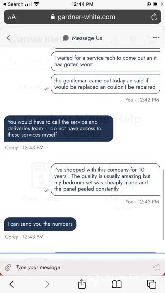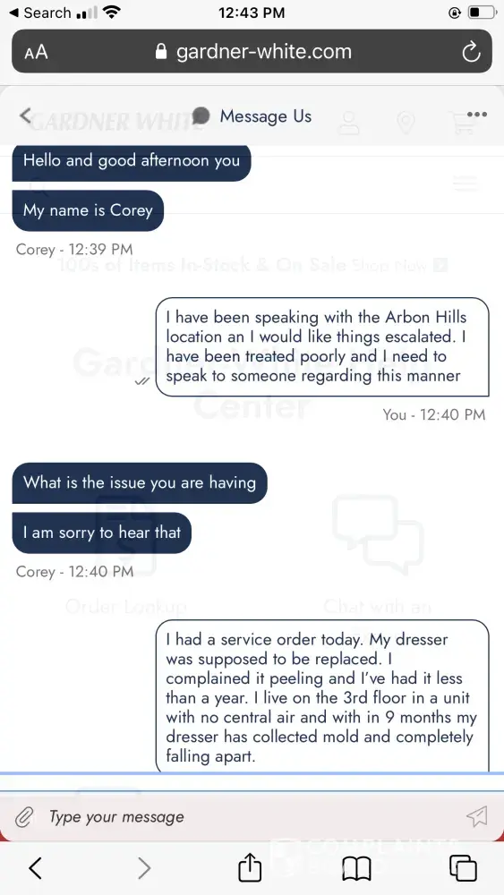 Gardner-White Furniture Customer service