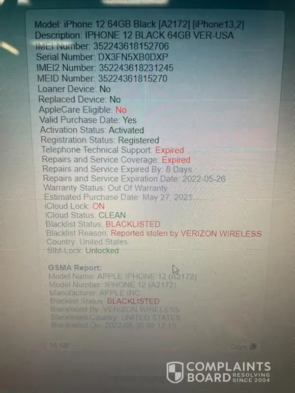 Gazelle claim number to get a refund for selling blacklisted phone : C02461344
