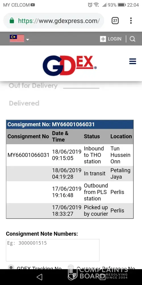 Saya menggunakan service gdex Perlis (tracking number MY66001066031) untuk menghantar buah harum manis kepada pembeli di Taman Sutera, Kajang Selangor pada 17/6/19 ...Dari Gdex tracking buah yang saya hantar itu keluar dari Gdex Perlis pada 17/6/19 jam 19:16:48 petang... Transit ke Gdex Petaling Jaya pada 18/6/19 jam 4:19:28 pagi ... Sampai ke Gdex Tun Hussien Onn (THO) pada 18/6/19 jam 9:15:05 pagi... Saya nak tahu apa sebab yang menyebabkan kiriman saya tidak boleh dihantar kepada penerima pada hari yang sama iaitu 18/6/19 sedangkan buah itu sudah pun berada di THO dari jam 9:15:05 pagi .. Setahu saya alamat penerima (Residences Sutera di Taman Sutera, Kajang) berada tidak jauh dari pejabat Gdex Tun Hussien Onn... apa akan terjadi pada buah itu jika ia berada didalam kotak terlalu lama dengan keadaan ditutup rapat dan siapa akan dipersalahkan jika buah itu rosak... saya siap tulis perkataan " BUAH" dengan besar diatas kotak ... walaupun saya ada tandatangan diatas janji akuan tapi kalau Gdex janji hendak memberi perkhidmatan untuk menghantar barang termasuk"BUAH " ... Gdex juga perlu mengalaskan tanggungjawab untuk MENGUTAMAKAN yang mana perlu dihantar kepada penerima dengan segera untuk mengelakkan sebarang masalah atau kerugian kepada pihak pengirim ... Semoga pihak Gdex dapat menyelesaikan masalah yang saya bangkit ini dimasa akan datang...