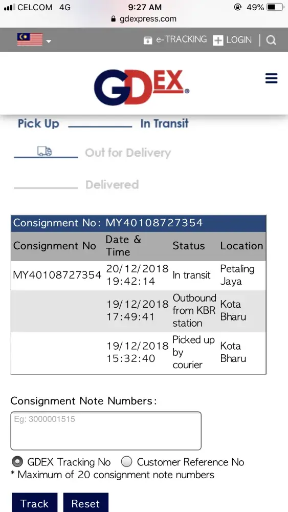 My parcels had reached GDEX Malim Jaya, Melaka warehouse on 24/12/2018, I understood that 25th was Christmas so I expect your team deliver to me either 26th or 27th Dec'18. However, I wait till 28/12/2018 only called to main line customer service and yet nobody manage to assist & your social media team didn't reply the email at all. Btw, your customer service Melaka promised to send the parcels to me on 28/12/2018 and yet the failed to keep the promise and 2/1/2019 I checked with sender and found out that GDEX Melaka team are trying to change the status to be collection by receiver. Can anyone investigate & look into this issue?