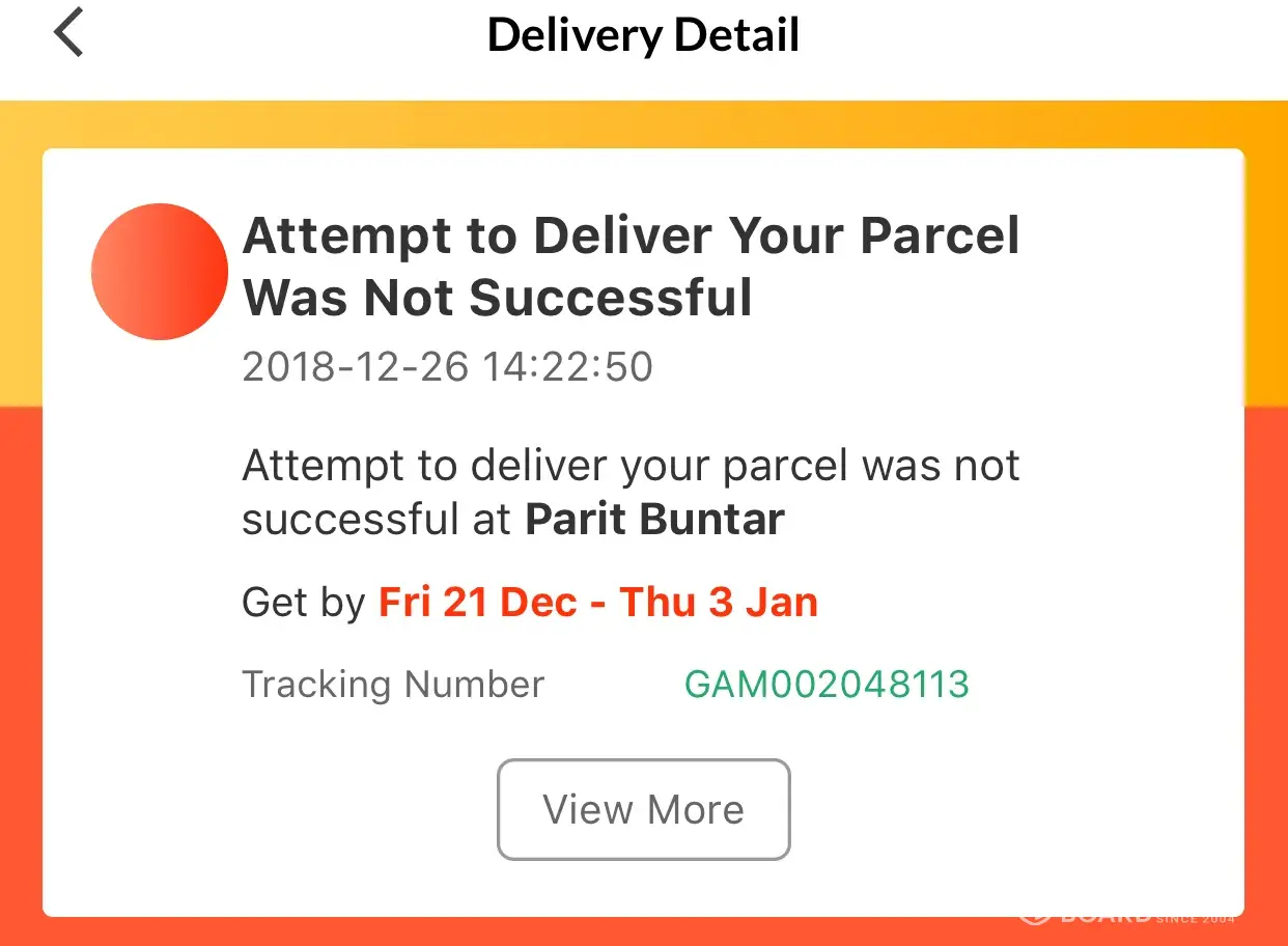 Tracking status showing my parcel undelivered due to sorry card, meaning no one there to received the parcel. But there's always people there to received the parcel, meaning the address I provided is 24/7 got people staying in. Without seeing any gdex delivery man in my area. More than 3times telling me the parcel will deliver on time, on the day I called, but never received, never give a proper answer for my question!