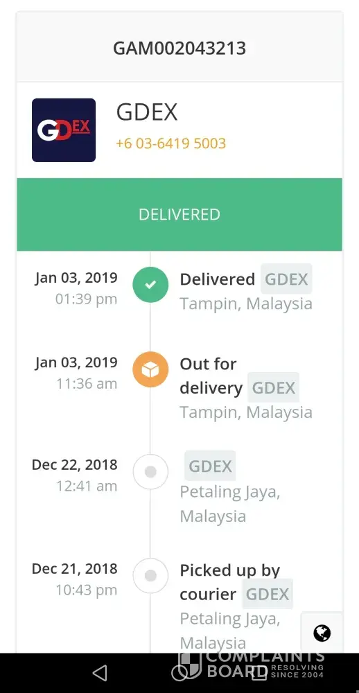 24/11/2018 Parcels reached Melaka warehouse, I understood 25th was Christmas so I expect my parcel can reach on 27/12/2018. Anyhow 28/11/2018 parcel no: [protected] & [protected] from the tracking record, it shown "undelivered due to Sorry Card". But there was no phone call, no sms, no any sorry card etc. After making complaint for more than 5 times been telling by customer service when they sending the parcel nobody at home. GDEX please well trained your staff if they'd like to cheat the customer. FYI, shopping mall operation hour is 10am-10pm impossible there is no one received the parcel. So, the fact is due to your staff laziness and they didn't send out the parcel on time and expect the receiver collect at your warehouse. May I know what is the purpose of using courier service is it to make our own trouble? Btw, making complaint since 28/12/2018 and nobody revert to me especially your customer service team, are they sleeping in the office?