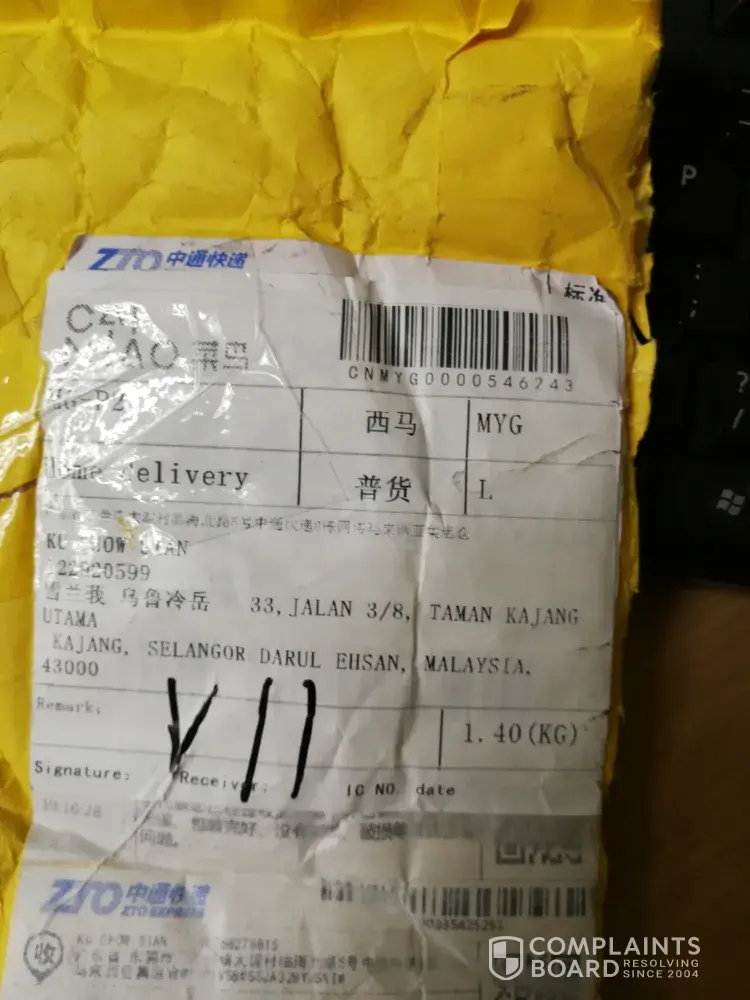 1) I received a parcel from China Taubau CN CNMYG [protected] which i purchased 10/10/2018.