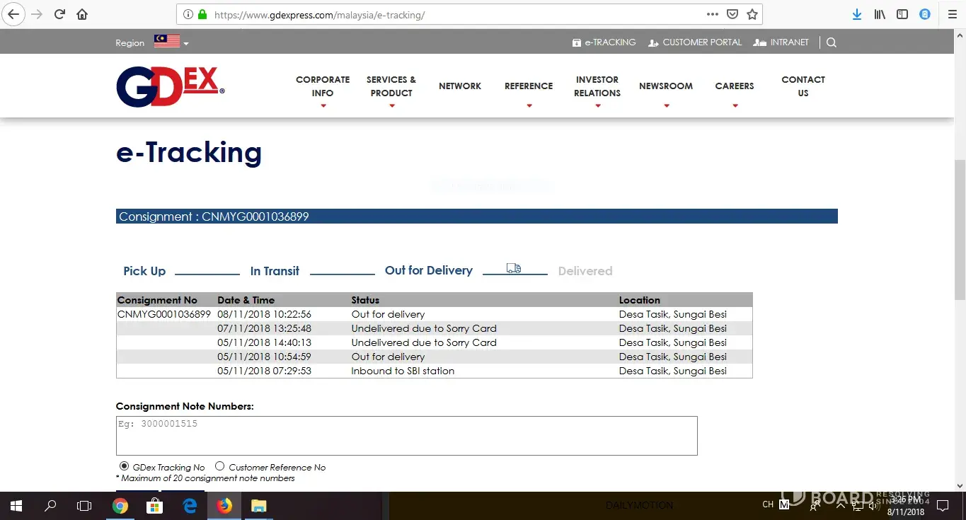 I am a client who made an e-banking in shopping online in Penang, Bayan Lepas area. I've been calling since 10th this month, and until today no one picked up the phone during working hours. I've tried three numbers: 03-[protected], 03-[protected], [protected]. I want to ask about my consignment's whereabouts. I've tracked and it's currently in Johor Bahru I have no idea why. I called multiples of times wanting to know a confirmation so I can pick it up at the nearest station around me, since the consignment fail to reach at the location I have provided in my address input. I hope I get a reply soon from Gdex authortities. It has been consuming my time in trying to solve this problem.