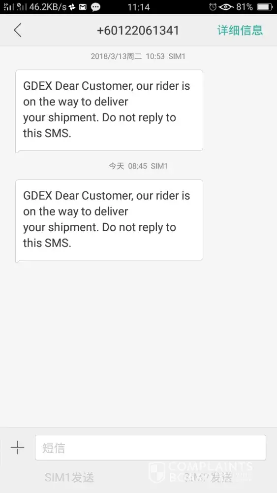 On the day of delivery, Gdex send sms informing my delivery is OTW (at 9.17am), I waited until 11am no one appear, went for lunch near my housing area. I came back at 11.45am and noticed Gdex card on my gate.