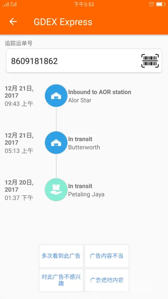 Parcel picked up by Gdex on 12th Dec 2017, but status updated on 13th Dec 2017 morning 6 am, and in transit at Petaling Jaya on 14th Dec 2017, 2 am until 15th Dec 2017 also not update parcel status.