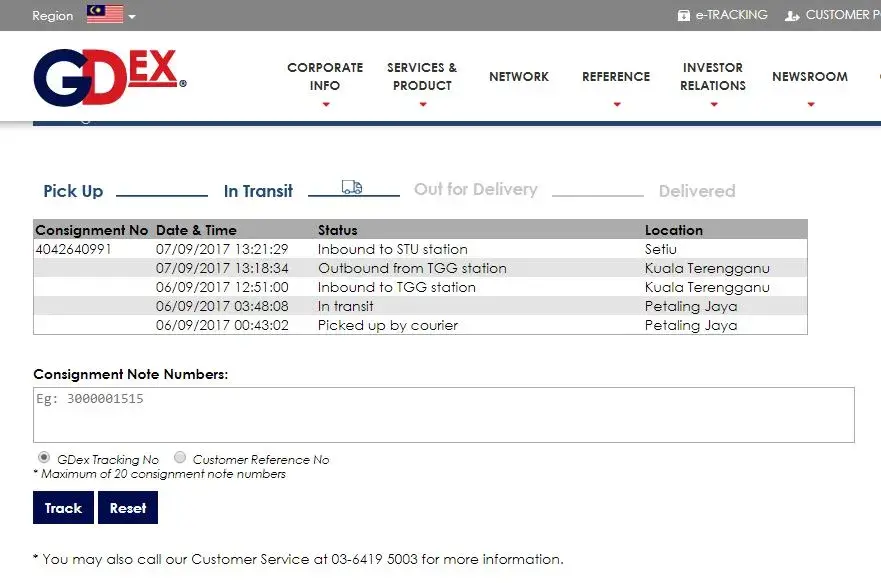 I posted my parcel to Kuala terengganu from Bukit jelutong 6 september 2017. COnsignment number [protected]. After 5 days, online tracking indicates the parcel stay stationary at Setiu.