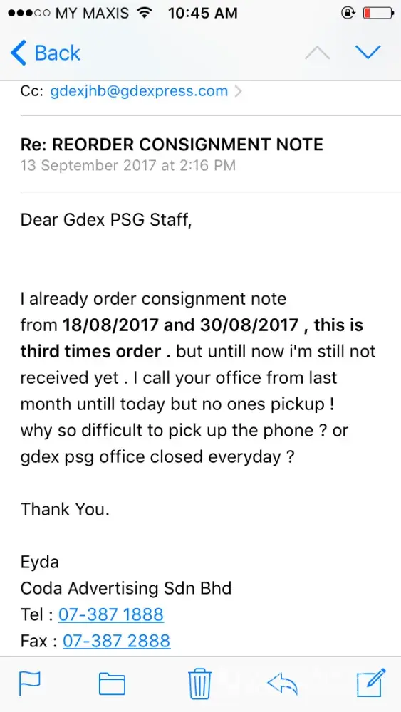 I hope gdex improvise their service or these online retailers better switch to a better courier. As it is, gdex is unreliable & very frustrating to deal with.