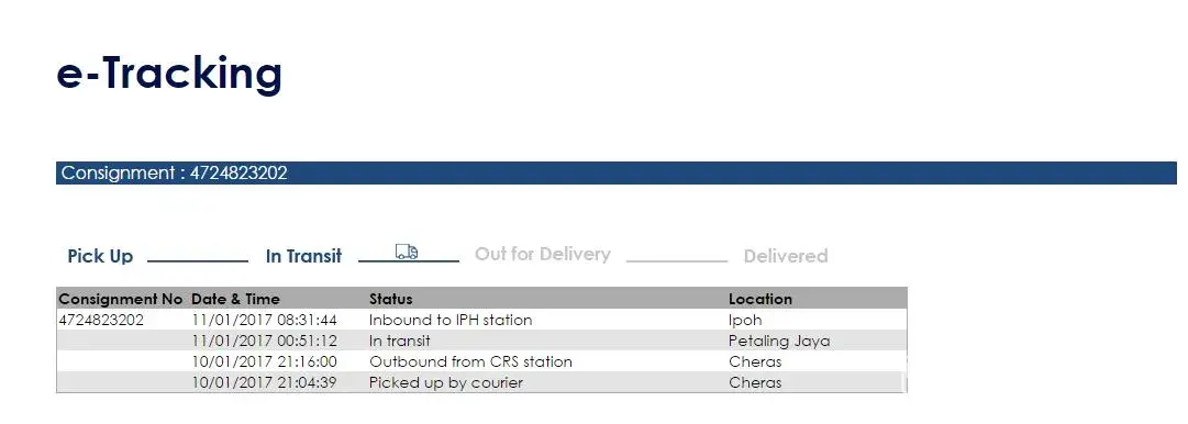 I suppose to receive my parcel yesterday (11/1/2017).in the end, I didn't receive it. So I called to my supplier and get the consignment note number and check the tracking status. The parcel sent to ipoh again!
