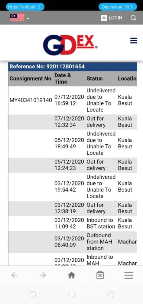 05/12/2020 18:49:49 Undelivered due to Unable To Locate Kuala Besut