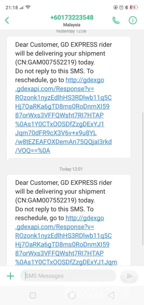 The Gdex rider replied rudely. Refer to the sms reply from him.