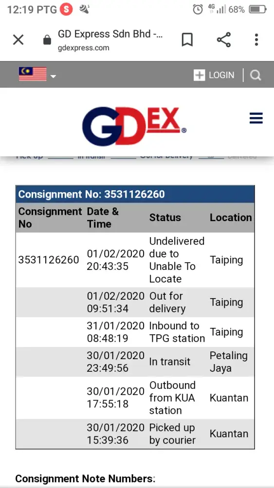 This afternoon I received a call from GDex and said they already arrived at guard house. I also already at guard house, but I didn't see any GDex truck. After questioning then only realized they were at another house of mine which is just one junction far away. Then I told them I will arrive in within 1 minute. Please wait. Then the deliveryman answered in...