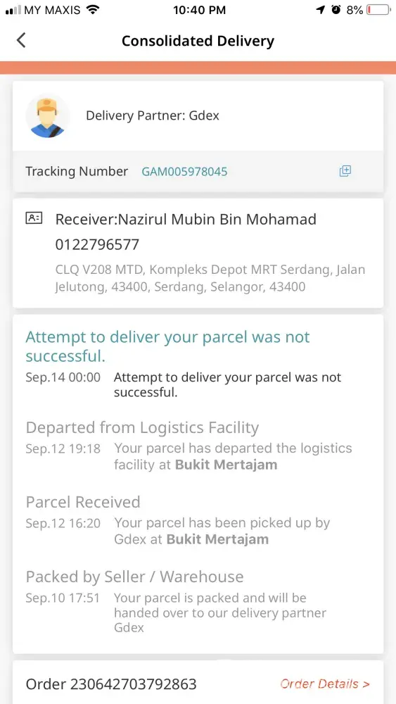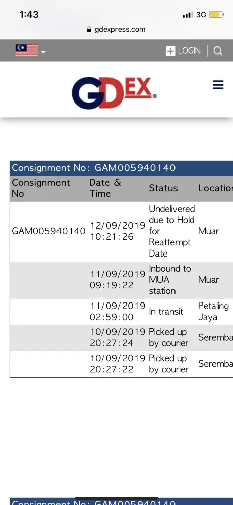 Happen every time im expecting delivery from GDex. Same excuse from GDex "undelivered due to access not allowed" even i never receive call from the driver. I still receiving my others purchase from different courier services on the same day GDex driver attempts to deliver. Please check why GDex Serdang always giving excuse to deliver to my address. Not only happen to me, also few of my friends here. Happen once, driver suddenly call asking either i still need this item, because they dont want to come to the address, and ask us to collect from GDex Serdang. Please check and take action on this, because whenever we bought something online and receive tracking code which is GDex tracking code, we already know there will be trouble.