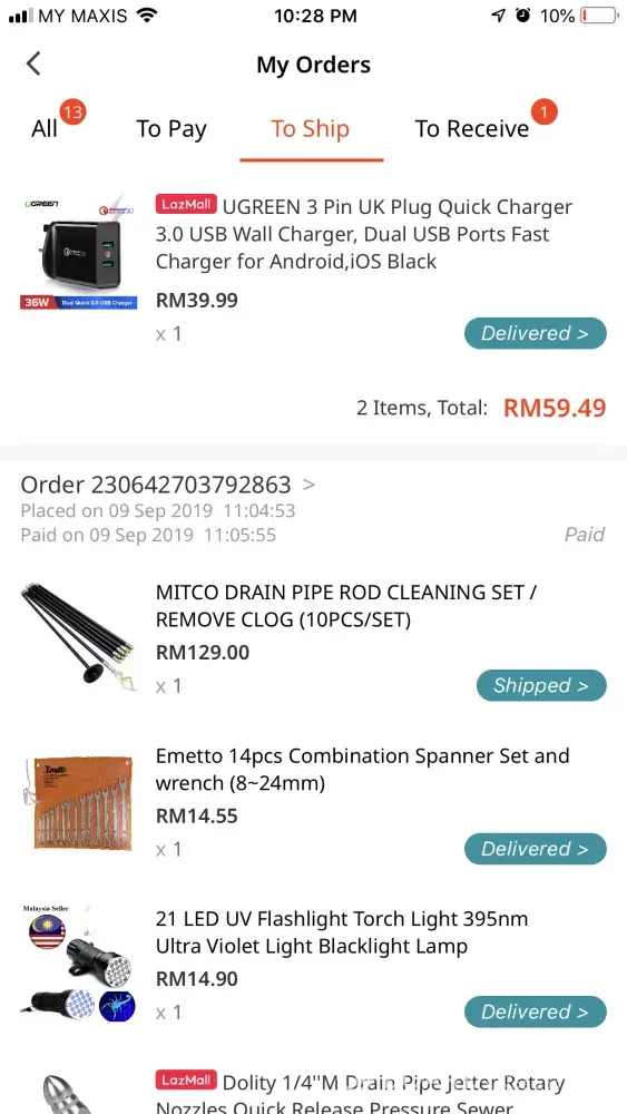 My consignment number : my10001661195