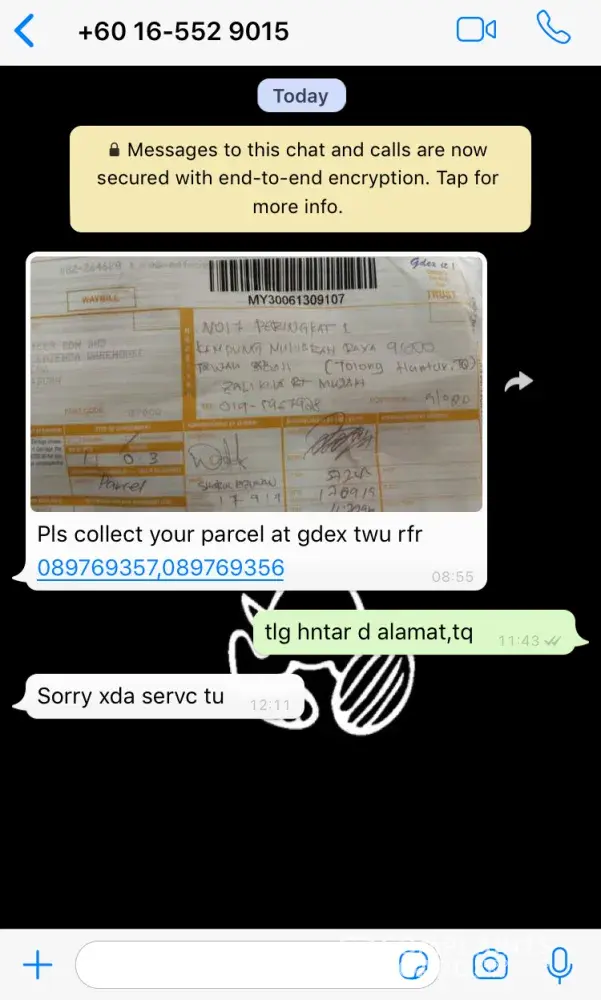 i got a whatsapp text from gdex tawau asking me to collect for my parcel.but i already ask to send my parcel to the address that written.but they said no service for that. why? didnt they suppose to deliver the parcel? why we need to collect it at their office? didnt we pay for that service? whats the purpose im using gdex service if they cant deliver it to my door? what kind of service you offer? i better use poslaju lah if its like this, useless service.now i have to pay for runner service to help me to collect my parcel, it so wasted!
