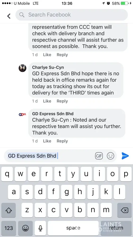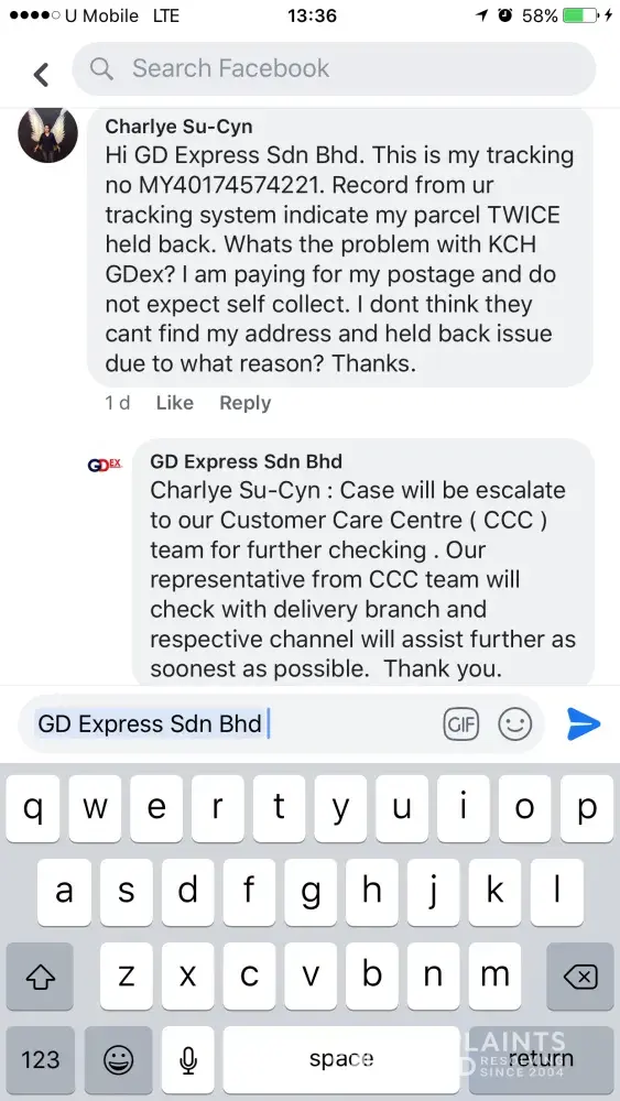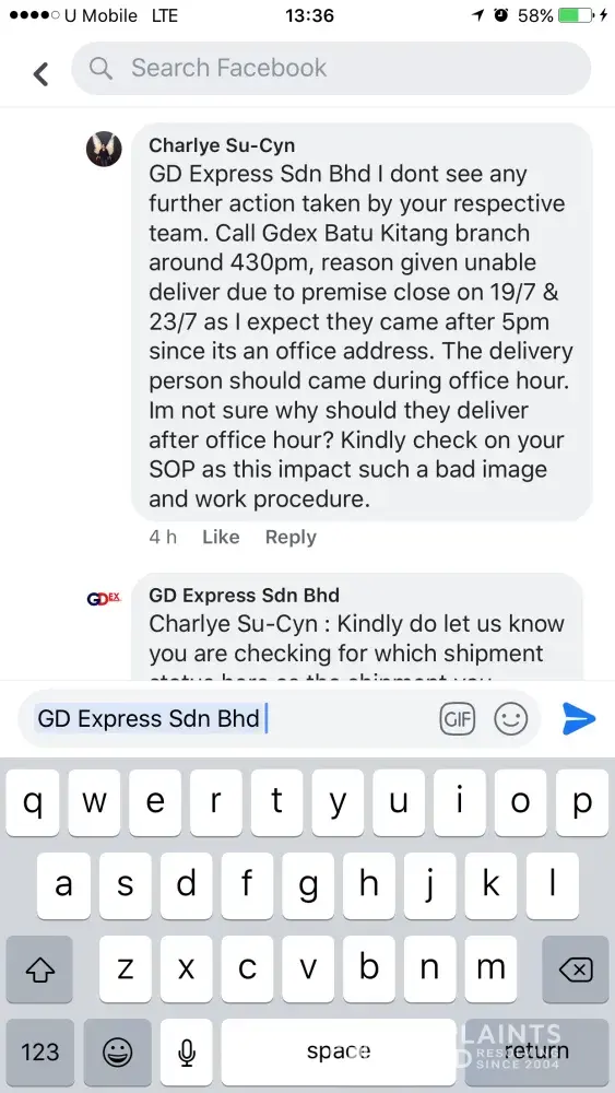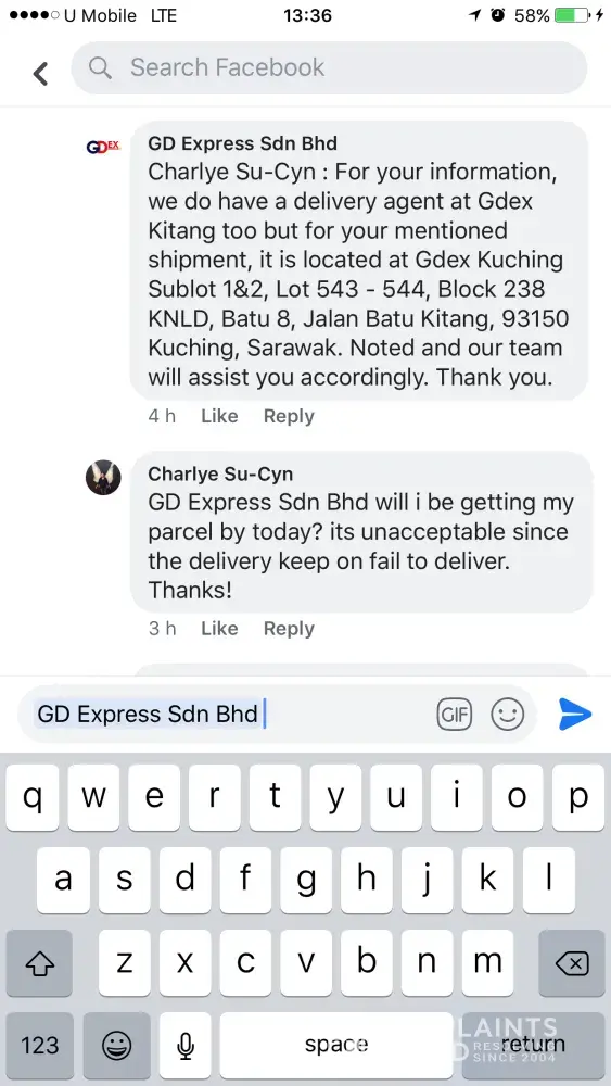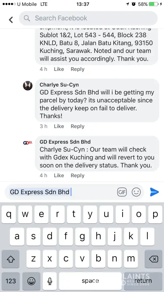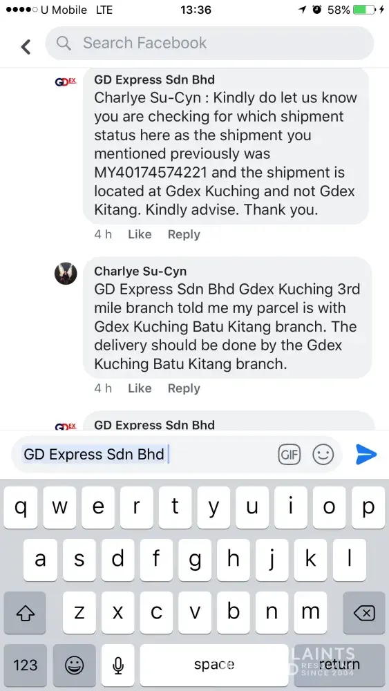 layanan buruk staff gdex sg koyan terhadap sender