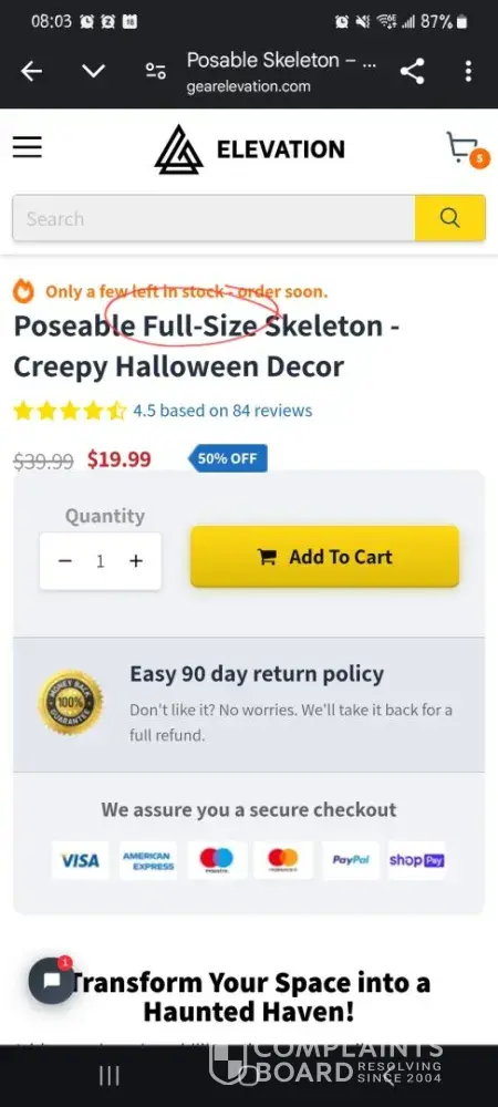 I should have listened to the bad reviews and ignored the better ones. I ordered four FULL SIZED posable skeletons. I read through the reviews. People seem pretty happy with them. They said they were full human size skeletons. However, I got four tiny, 16 in, fetus sized skeletons. I didn't bother opening the package. I paid $71.45 for this garbage. I called customer service. I was told that the company does not provide shipping labels. They said I can return it for a "full refund" minus shipping. I tried to explain to them that a full refund means everything that I paid for including shipping. Initially I did not pay for shipping. Shipping was free but now I'm being charged 10% of what I paid for shipping. We went back and forth. The guy kept telling me that I could return it for a full refund but I would have to pay for shipping. We went in circles with this. I also tried to explain to him that full-sized does not mean 16 in. So they didn't send me what I believed I was ordering. He then said on the website way at the bottom, in smaller letters, it says that the skeleton is 16.5 in. However, everywhere else on the website, including reviews, it states the skeletons are full human size. I informed him that the website was deceitful. I informed him that the website should actually say full fetus size skeletons. I also informed him that there's nowhere on the website that says you have to pay for the shipping when you make a return. He finally ended up giving me a refund minus the amount for shipping. He said I don't have to ship the item back. When I argued that I was still missing $10, that the amount he's refunding me is less than what I paid for, he said that what he took off wasn't the shipping. It was the non-existent shipping protection and taxes. Strange how when I was ready to return it I just needed to pay shipping. Strange how now that he's doing me a "favor" he has to take off the "shipping protection" and taxes. He had the audacity to offer me $71.45 worth of store credit if I returned the items. I told him I was never ordering from the store again so I didn't want credit. Then he had the audacity to offer me 25% store credit to keep the items. When I declined he offered me 50% store credit. In the end I ended up taking the $61.16. is company does not know the meaning of the word f u l l. Full sized means smaller than you think you're going to get. Not normal size. Full refund means partial refund. I tried to explain this to the representative and he just kept saying the word full. It was extremely frustrating. I will never order from this company again.