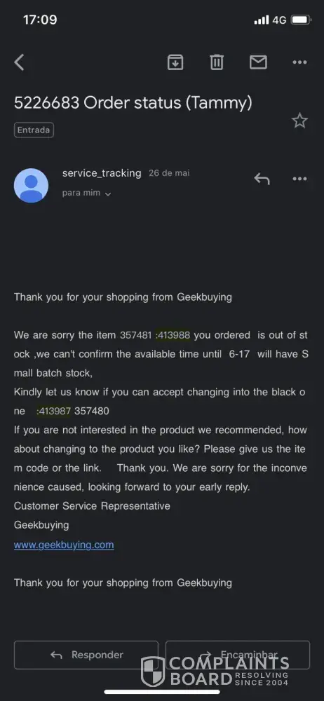 Disappointing Experience with Geekbuying: Lost Order and Poor Customer Service