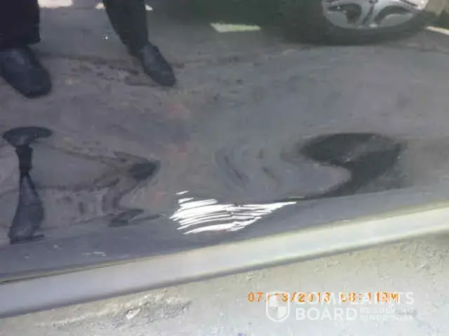 I went ahead and filed a claim and took the car to the collision center. The claims adjuster told me that a sealant would fix the issue, but he decided to replace the door and the side mirror as well. I honestly do not understand why he replaced the side mirror as there was absolutely no damaged to the mirror. He failed to tell me that by doing all this work, the cost to repair door would become over $1000, resulting in placing an "at fault accident" on my insurance record and Geico charging me roughly $240 more to my premium.