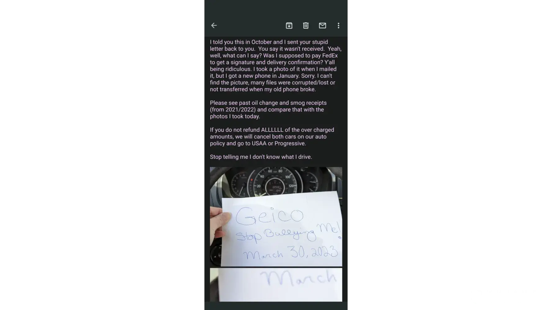 I continue to share my vehicle service records with numerous people at Geico, through multiple channels, to prove I drive my secondary vehicle only 2,000 miles per year.