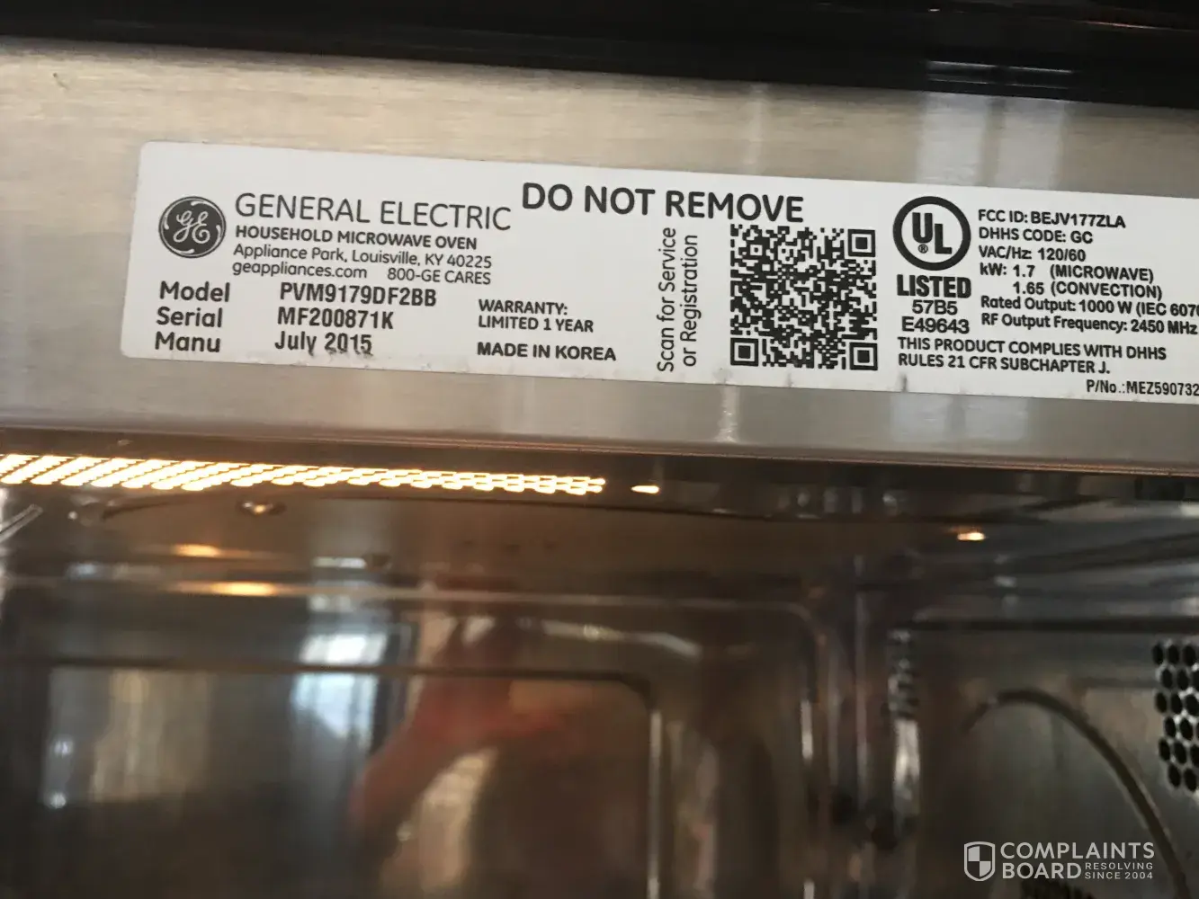 I have had the model referenced since 2007. The bottom of the microwave under the wheels of the carousel has peeled off. The GE site says its dangerous and may start a fire and to discontinue using the microwave.