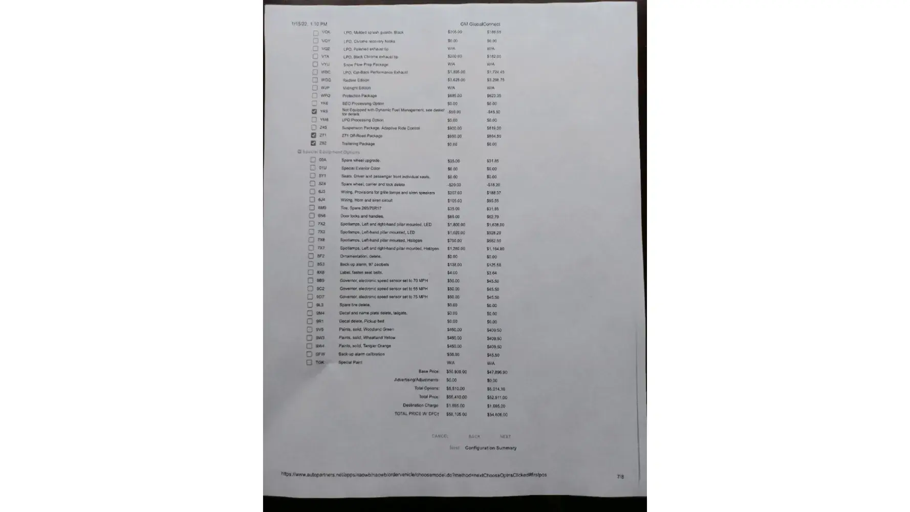 Attached is the original order on 1.15.22 for 58,105 and the window sticker from 3.28.22 for 60,305. The options price and dealer finance charge have not changed which means GM raised the standard vehicle price.