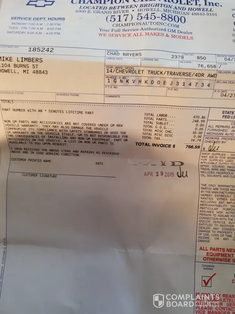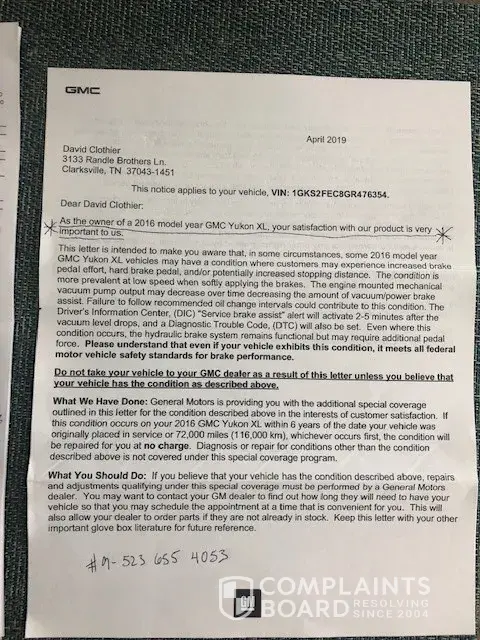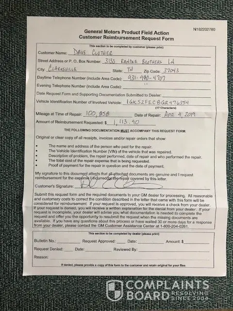 My wife worked for GM for 10 years in Detroit. We've now owned 10 consecutive GM vehicles and still utilize my wife's full GM discount on new GM purchases. We do all of our repairs and maintenance at our local dealership. We don't have to do this, but chose to because we believed in a company that we felt for so long was the pride of USA powertrain and craftsmanship. I'm not sure I'm willing to overpay for that misconception any longer. I've attached my receipt for the expensive repair as well as my customer reimbursement request form. I have zero expectation of GMC reimbursing it. My true goal and hope in this effort is for someone at GM to recongnize this as a customer service failure, and are willing to stand up and do the right thing. My name is Dave Clothier and if you need to reach me;