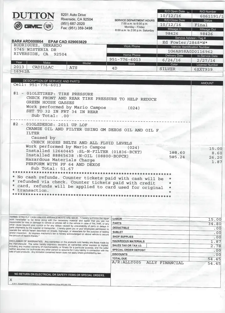 I paid the entire bill after an argument in Ourisman's Service cashier's area even though I believe the invoice language is misleading.