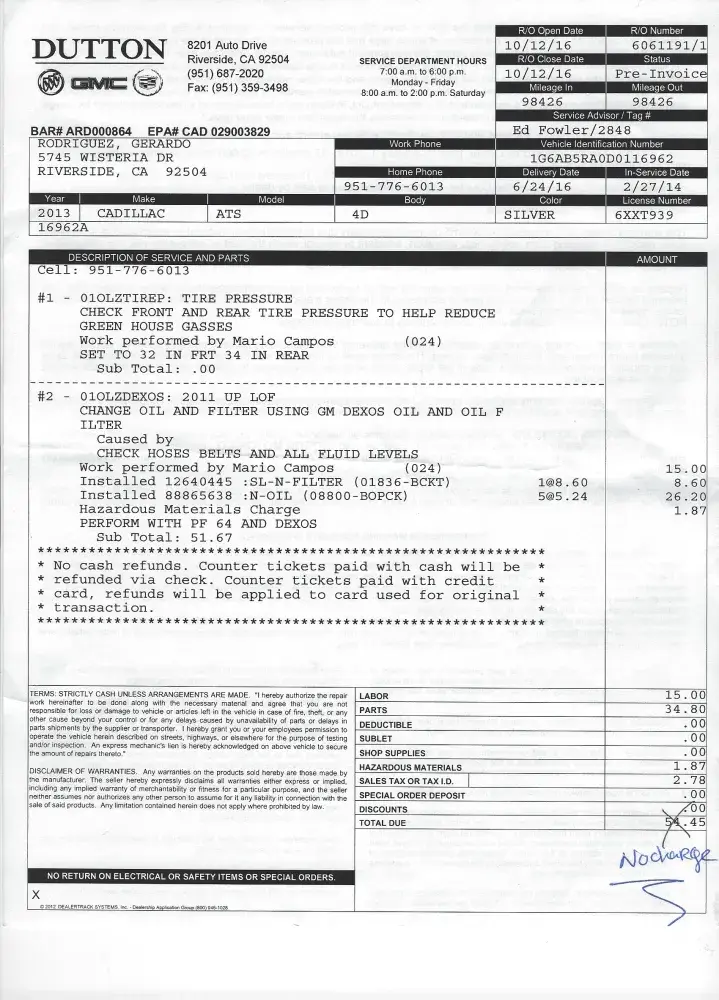 Additionally, charging a shop rate of $135 / hour for 4.5 hours to change an emissions pump and a valve is excessive.