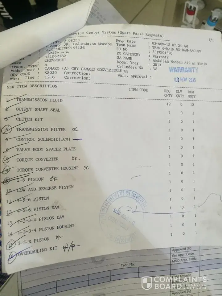 The problem was under control until I decided to sell my car since am leaving the country for good. The price I put for my car was always unaccepted by the buyers when they check through your local dealer that they overhauled the transmission under warranty at a very low mileage. They blame me for why I didnt force gm to replace the whole transmission rather than overhauling it. I dont blame them since the overhauling was in a very sensitive part of a super sport car and who would guarantee that the transmission will not be damaged later when they are out the warranty and the buyer will have to pay the charges for a new very expensive transmission. I am completely disheartened and need someone to contact me through my email where I can send him or her my story with your local dealer and how they treated me rudely.