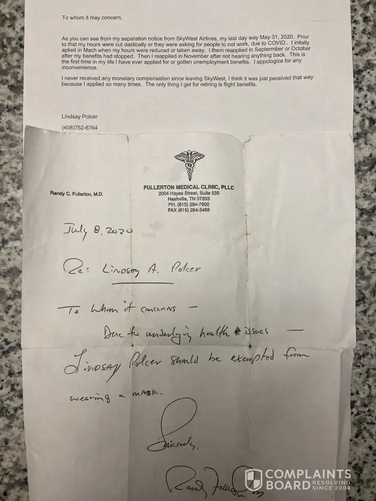 I haven't worked since May of last year. My hours started getting cut in April due to covid. I was receiving benefits until November. I have had no money come in for 4 months. Last person said I have to wait for a hearing cause my last job said I took retirement. Retirement got me no money and only means flight benefits. I sent in a letter explaining this and also a copy of a note from my doctor since I am unable to wear a mask for health and psychological reasons.